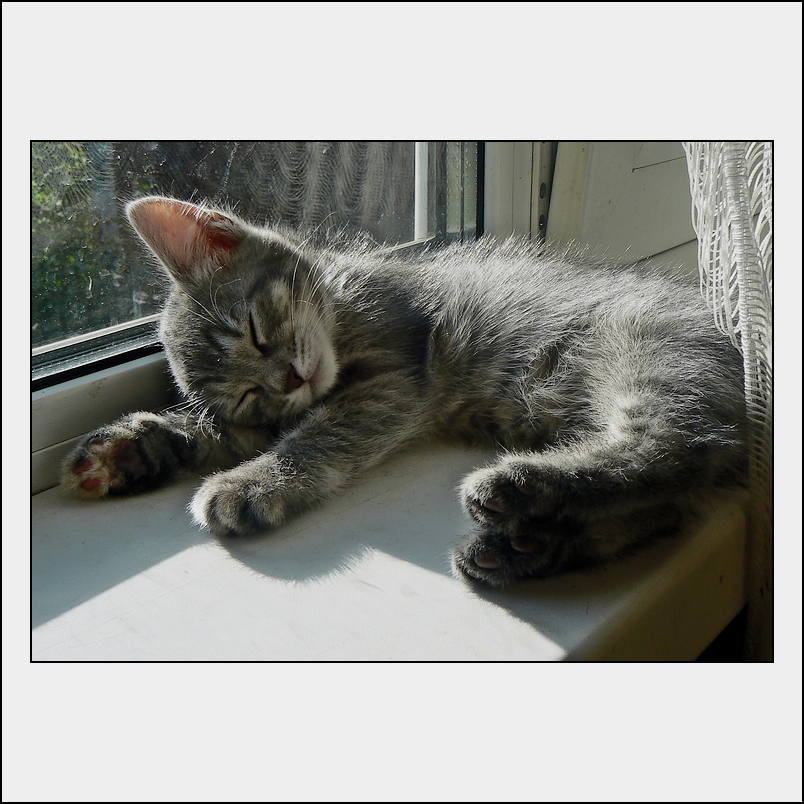 Gatta incredibile, con una certa tendenza a cercare il rischio: anche dopo una caduta dal nono piano sull'asfalto dove ha consumato probabilmente ben più di una delle nove vite in dotazione continua a passeggiare sulla ringhiera del terrazzo nella nuova casa ed a considerare questo il posto migliore dove schiacciare un pisolino ...