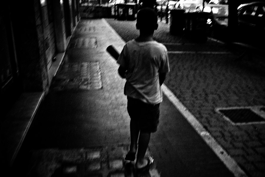 Ruvida e spigolosa scena notturna all'interno della quale il bambino che avanza "armato" aggiunge inquietudine ad un'atmosfera resa già di per sé con durezza. Tutti i "difetti" (mosso, rumore, neri chiusi, mancanza di nitidezza...) concorrono all'efficacia emozionale della ripresa. Un bel risultato.