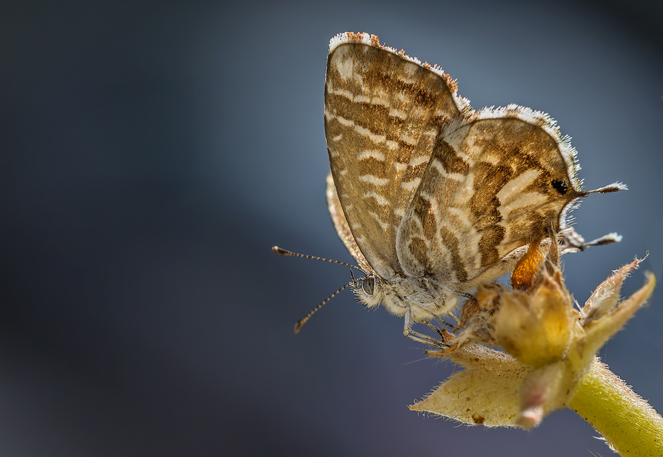 La trasparenza è molto efficace e ben riuscita: valorizza la trama alare della piccola farfalla (il licenide dei gerani, direi).