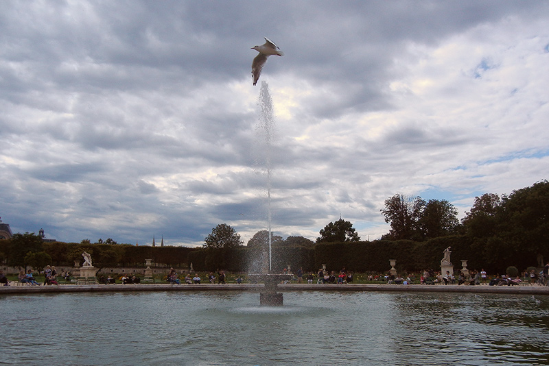 Sembra che il gabbiano sia sospeso sul getto della fontana,grande prontezza,bella composizione!Ciao,Sergio. Smile
