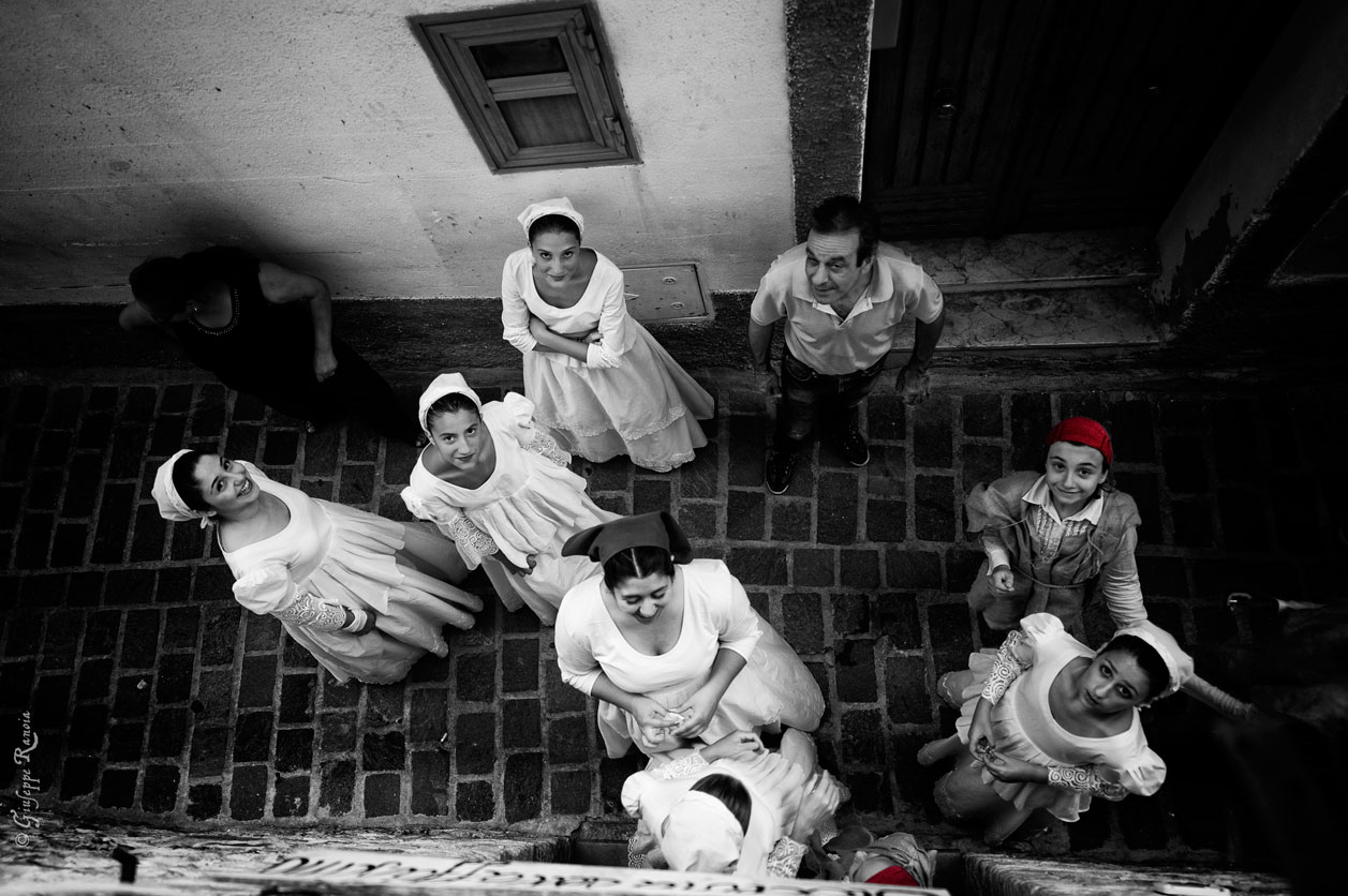 In questo caso, nella rappresentazione che ci si apprestava a svolgere, il cappello rosso aveva un significato particolare (che da una fotografia sola non si evince, giustamente mi dirai) e fondamentale, ragion per cui mi è risultato non fastidioso lasciargli il colore. Elemento "antico" che si vivifica relegando al passato gli elementi viventi...