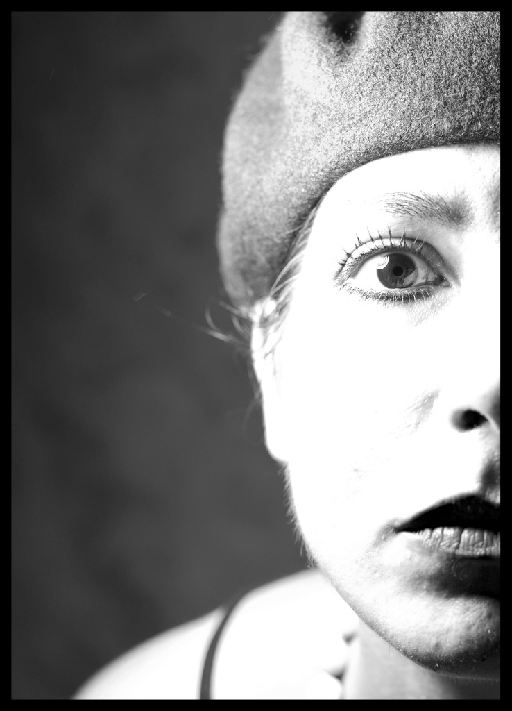 allora, in realtà mi è stato solo detto di fare un autoritratto... e devo dire che secondo me questo primo risultato non ha nulla a che vedere con ciò che vorrei, ma è nato da un'esigenza: provare a vedere se dentro casa, semplicemente liberando una parete, cambiando una lampadina e spostando una lampada avrei potuto dar vita a qualcosa di decente.