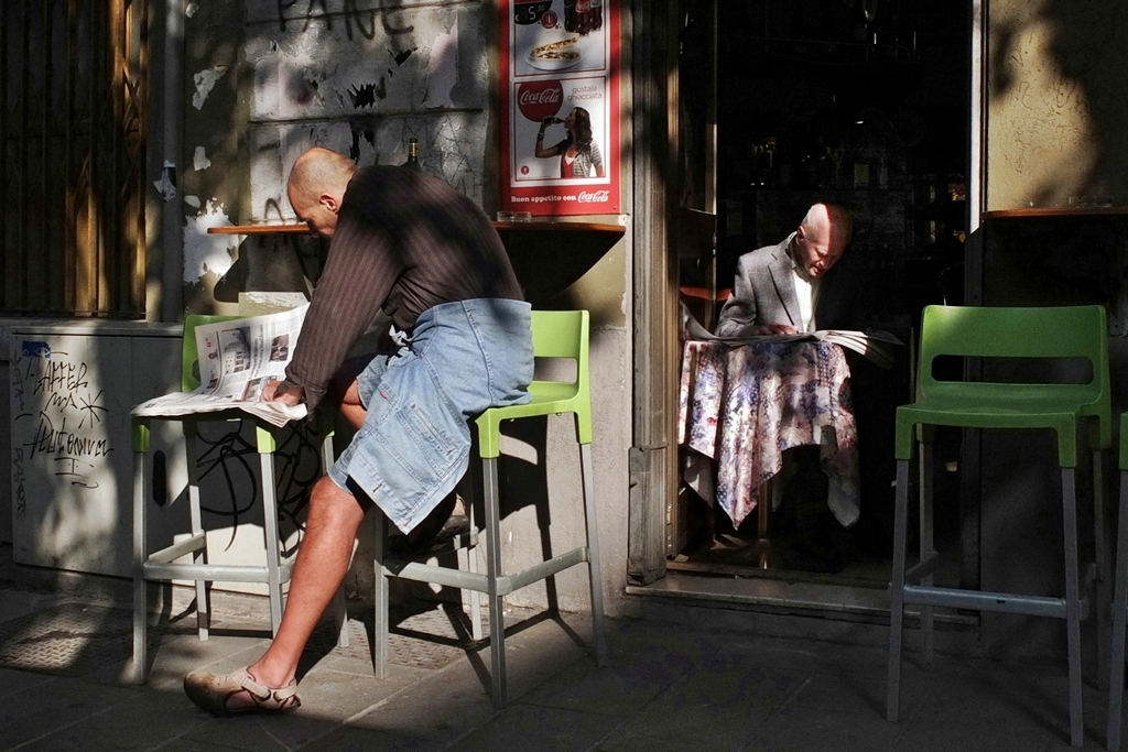Una street che punta tutto sulla luce per porre in evidenza le due figure molto affini su cui far cadere l'attenzione dell'osservatore.