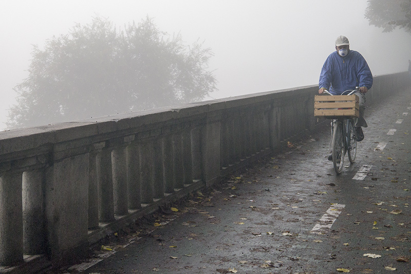Grande atmosfera in questo bellissimo scatto autunnale,ottima composizione.Suggestiva ed un po' inquietante la figura del ciclista con la mascherina,avrei provato anche una rotazione orizzontale.Complimenti!! Ciao,Sergio. |