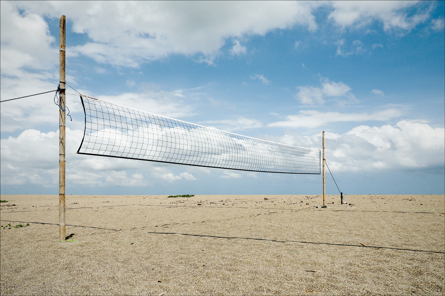 La scena è abbastanza asettica, è vero: con qualche particolare in più sarebbe decisamente una fotografia più accattivante. Ero in una spiaggia abbastanza sperduta e deserta dell'isola di Bali, quando ho visto quella rete mi son detto: "ma chi cavolo la usa sta rete?". Una rete buttata li, inutilizzata, senza niente e nessuno intorno.. li tutta sola e mi ha colpito.