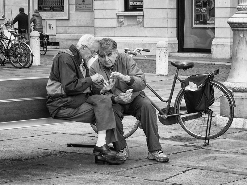 Gli smartphone sono oramai all'ordine non del giorno, ma del minuto: tuttavia una scenetta così è veramente gustosa, grazie anche ai due simpatici nonnetti che si scambiano preziosi consigli. _________________