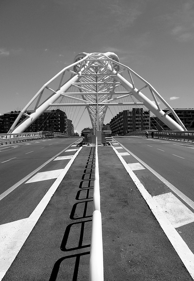 sarei curioso di vederla di notte , possibilmente sotto esposta in modo da percepire solo la struttura e le strisce pedonali , chiaramente in b/n .