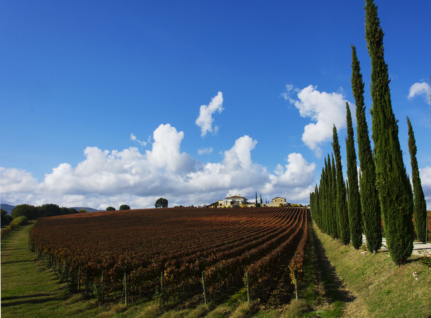 Qui vedo troppo spazio occupato dal cielo ed un cipresso con la punta tronca, anche i colori delle viti non mi sembrano ben rappresentati.
