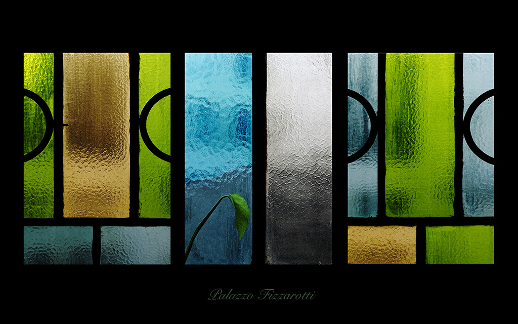 | Bella inquadratura, colori e anche la pianta che da un tocco di adornamento alla sequenza dei vetri colorati. |