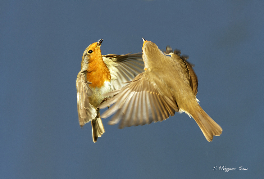 | Con l'arrivo dell'inverno e le prime gelate Ivano esce dal letargo e ci propone le sue delizie. In questo caso vediamo una bella immagine dei litigiosi e territoriali pettirossi. Ciao e ben tornato.