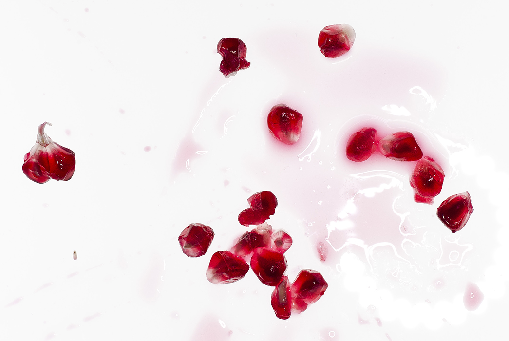 I chicchi di Melograno li trovo ben definiti e i colori esaltati dallo sfondo bianco sono veramente molto belli quello invece che mi domando e' come mai hai disposto in quel modo i chicchi nel frame