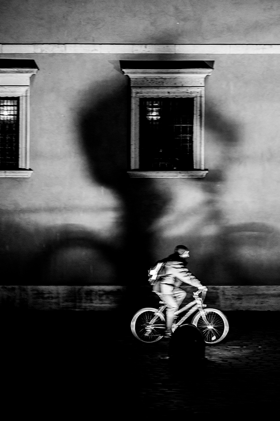 Molto suggestiva questa gigantesca ombra,bello ed adeguato il bn a toni estremi,peccato per il micromosso dello sfondo.  |