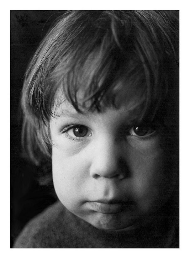Ripresa strettissima, approccio incalzante verso il volto del bambino. Eppure per me tutto torna, e si resta conquistati dalla liquida bellezza di questo sguardo dai grandi occhi, dal visetto che improvvisa un accenno di sbroncetto disarmante. Il bianco e nero ha un filo di polverosità e la giusta vaghezza per controbilanciare lo scatto ravvicinatissimo. La direi una ripresa analogica poi scansionata per il digitale , ma potrei sbagliarmi naturalmente.
