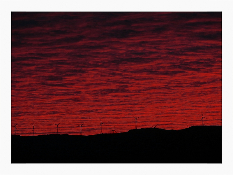 La silhouette a terra con le pale eoliche le trovo convincenti anche se una porzione di terra nera l'avrei eliminata; il cielo poco leggibile lo trovo molto innaturale e forzato anche se pieno di belle nuvole?