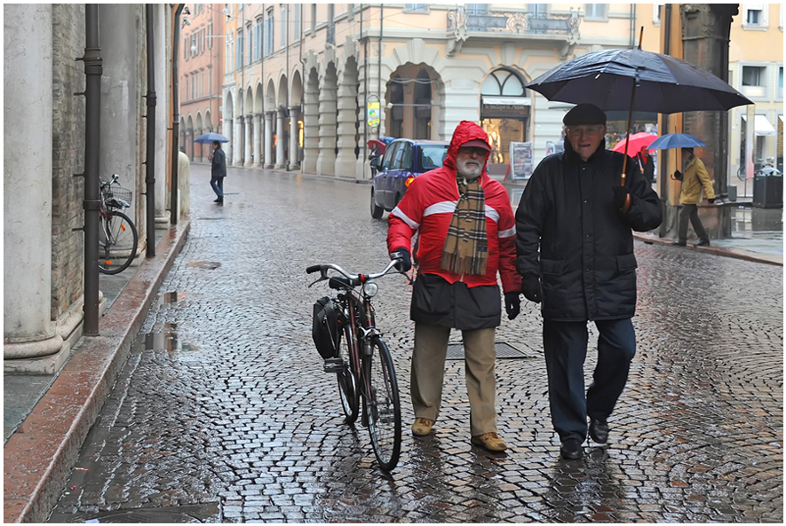 Simpatici questi due amici,non più giovanissimi,ma ben attrezzati contro le intemperie!Belli i colori e la composizione.  |