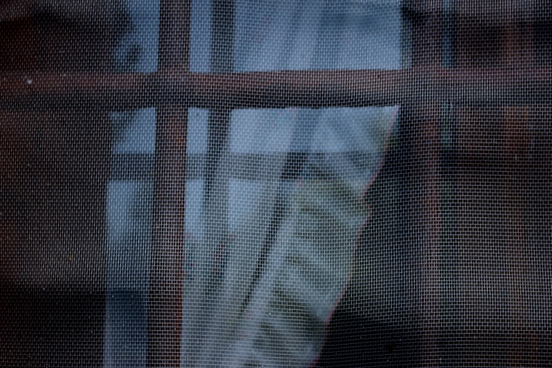 Conto almeno 4 strati tra il fotografo e il soggetto, la rete, l'inferriata, il vetro, la tenda...