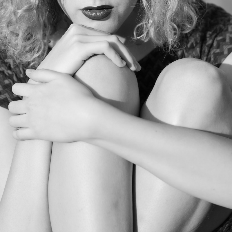 Ciao, mi piace il taglio del volto. Si notano sia la ricerca della composizione, e di un taglio diverso dall'usuale. Ma a mio parere, il volume occupato dalle gambe e dalle braccia, unito anche alla carnagione molto chiara della modella, mi sembra squilibrato e non mi convince...come non mi piace lo sfuocato del braccio.