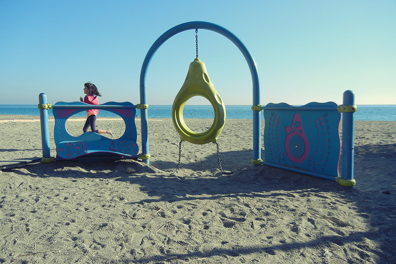 Io credo che i colori siano appositamente voluti in questa immagine. L'unica considerazione che mi sento di fare è che avrei preferito più aria sopra la giostrina e un pò meno sabbia sotto.