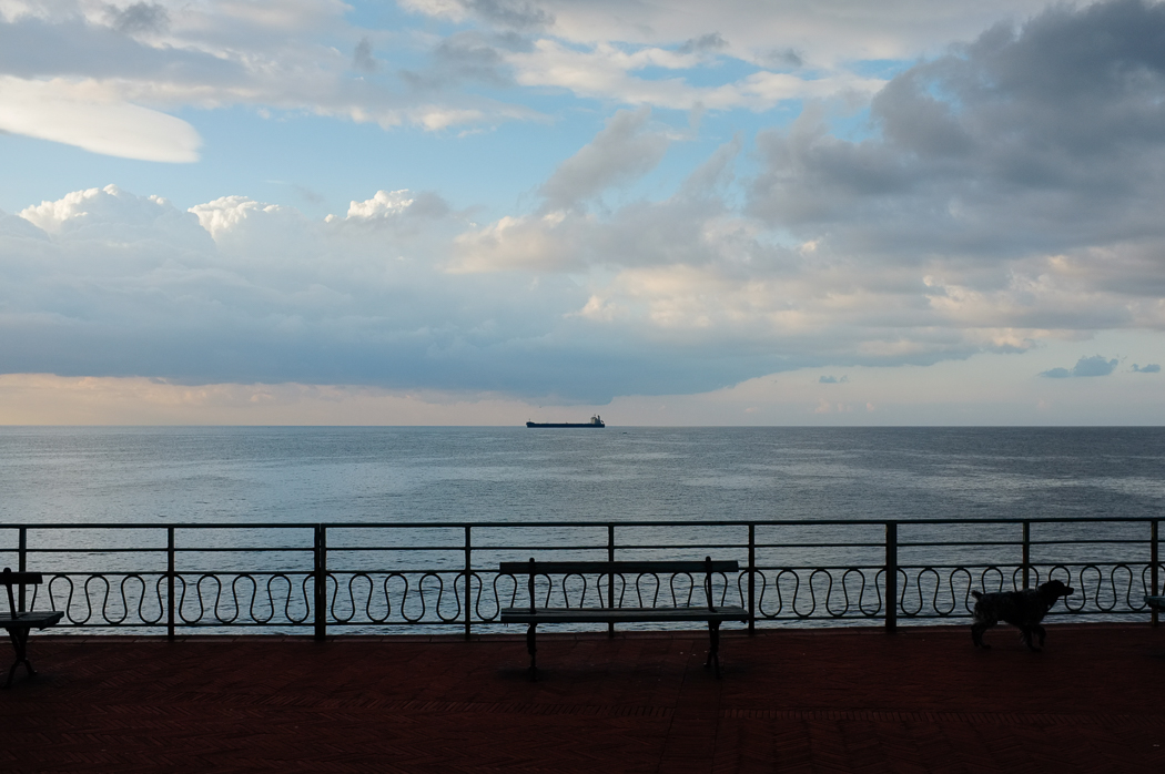 Pere me una ottima revisione nella seconda . Qualcosa magari avrebbe potuto migliorarla in fase di scatto, come una precisa coincidenza sullo stesso asse di nave lontana e panchina centrale, e il pezzo laterale di panchine ai lati magari poteva essere eliminato... Il cane no però, va benissimo.