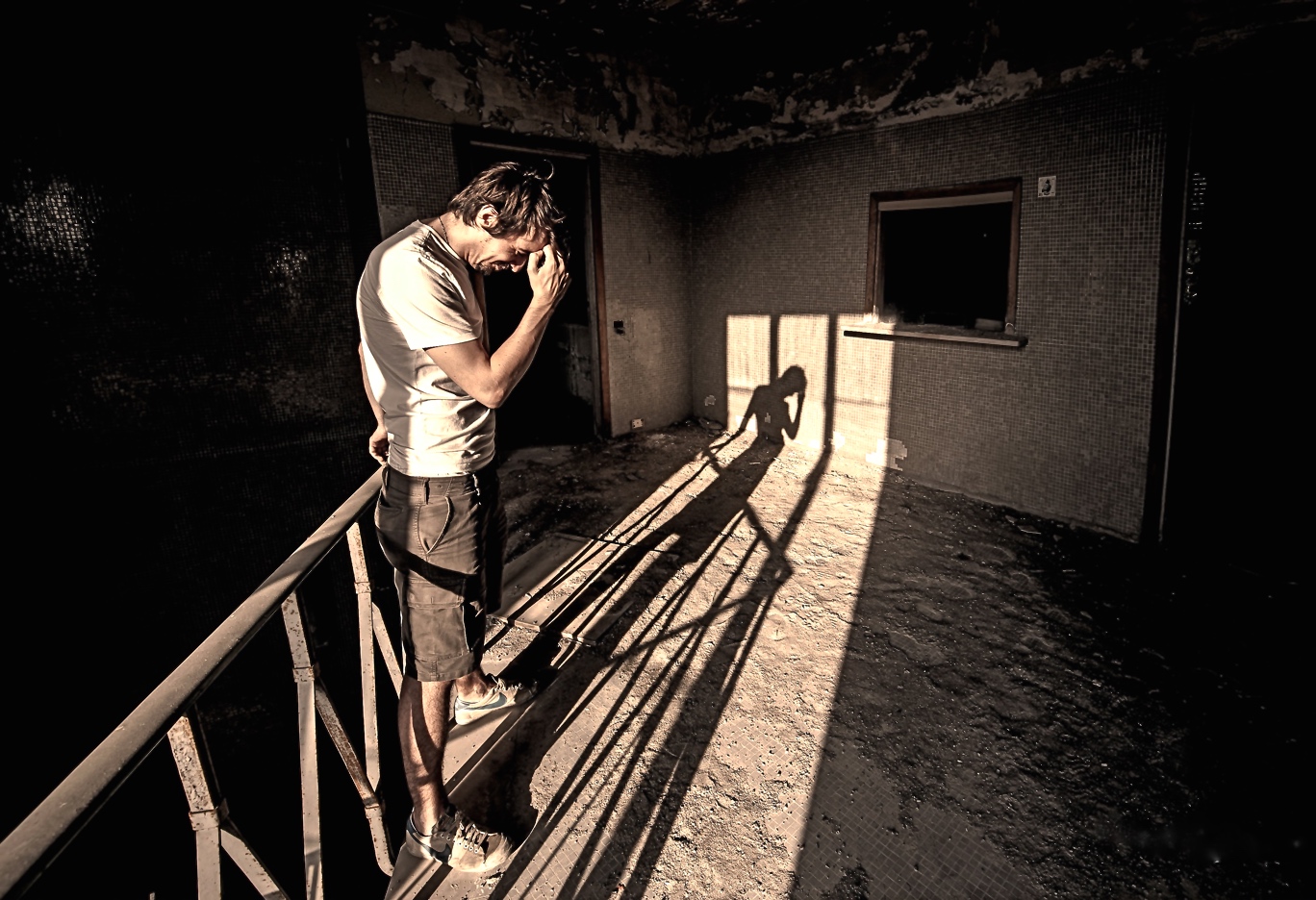 Personalmente questa immagine mi piace molto, la diagonale della ringhiera trasporta l'occhio sul soggetto principale che poi si sposta sull'ombra ben evidenziata dalla lama di luce, molto bella anche la tonalità che hai aggiunto in post.