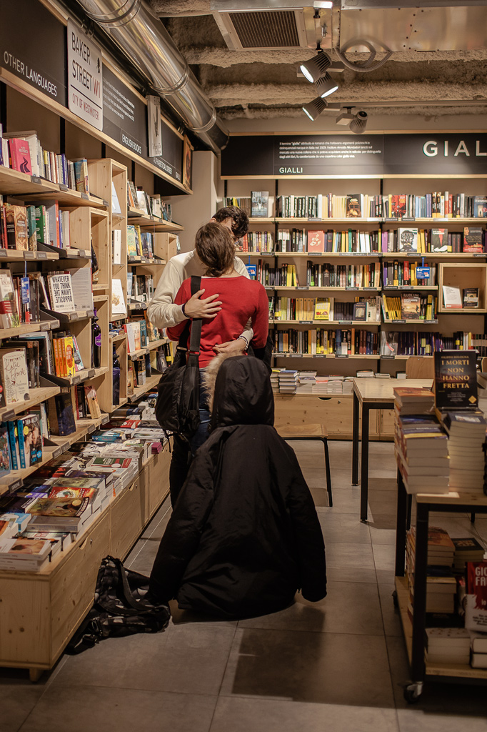 Bella questa scena d'amore rubata...se i morti non hanno fretta, come recita il libro esposto sulla destra,...forse i vivi sì