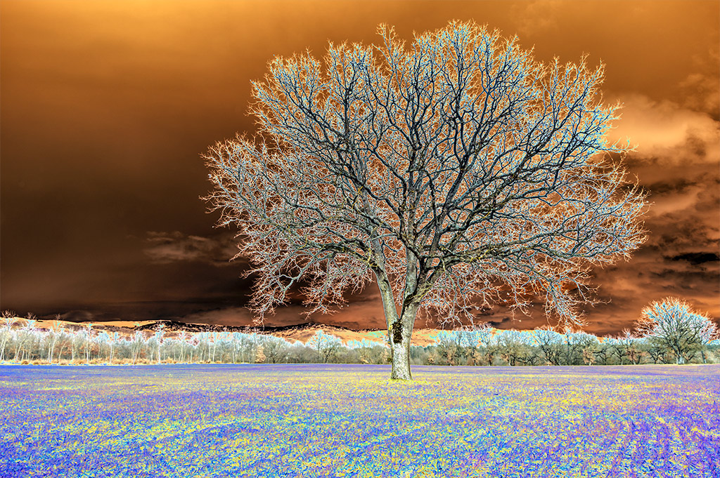 Sinceramente ma è un gusto personale non impazzisco per queste lavorazioni però l'albero è ben ripreso e anche la composizione è azzeccata; il prato sottostante farebbe impallidire perfino Castelluccio durante la fioritura  |