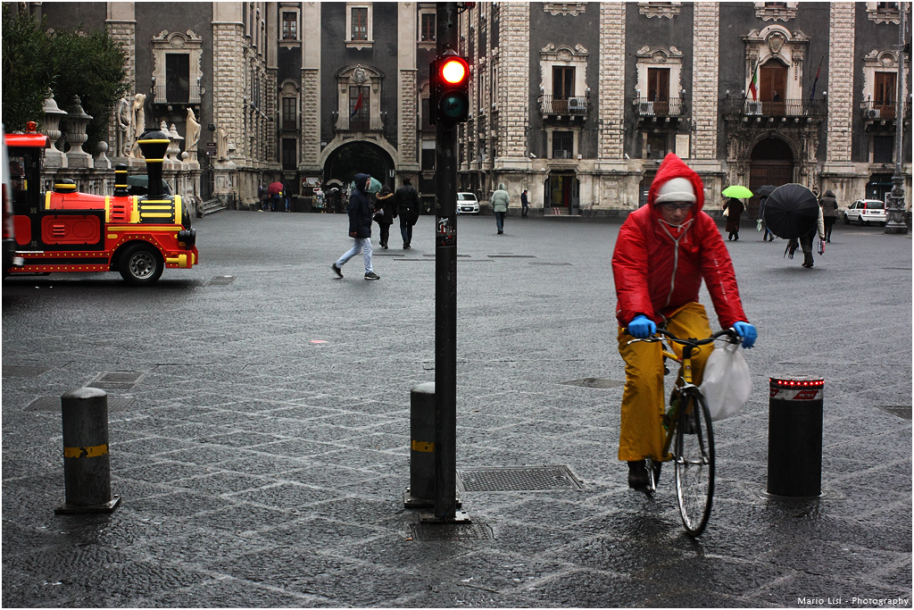 Riguardo alla foto, vedo i colori evidenziati, il rosso ed il verde dell'ombrello, che tendono a forzare la lettura che dovrebbe essere più spontanea e libera da parte dell'osservatore.