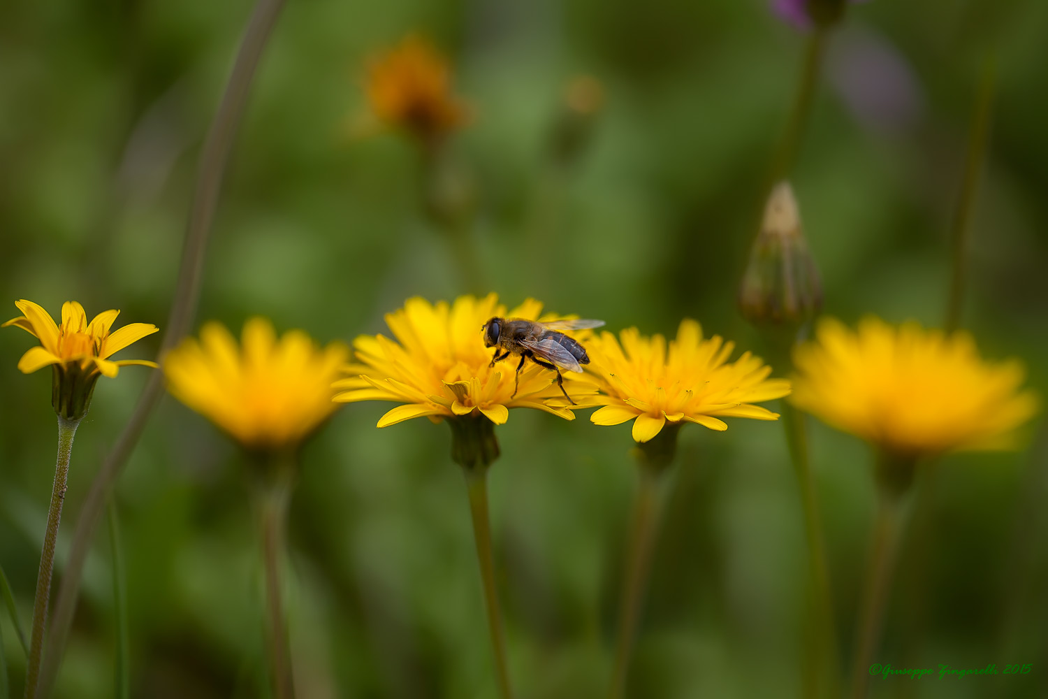 Considerando il gruppetto di tarasacco in fila come dei soldatini e la sirfide propio al centro la composizione come tu l'hai scelta ci può a mio avviso anche stare. Avrei però, a mio modo di vedere distanziato dai bordi dx e sx il piccolo gruppo floreale e magari modificando i valori medi portandoli a 1,15/1,18 per aumentare un po' la luminosità.