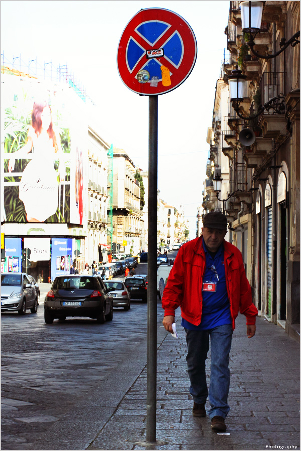 perche' non vai a caccia di persone tipo questo soggetto con abiti con accostamento cromatico dei cartelli stradali, quindi per un divieto di accesso un soggetto vestito di rosso e bianco e cosi' via..