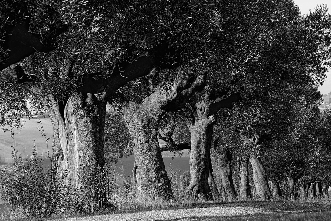 Imponenti e saldi nella tua proposta fotografica, minacciati sia dal batterio che dalle controversie conseguenti nella realtà attuale. Mi piace molto che fra gli spessi tronchi, efficacemente contrastati nella tua conversione, si intravvedano frammenti di sfondo , levigati e luminosi, della collina intorno.