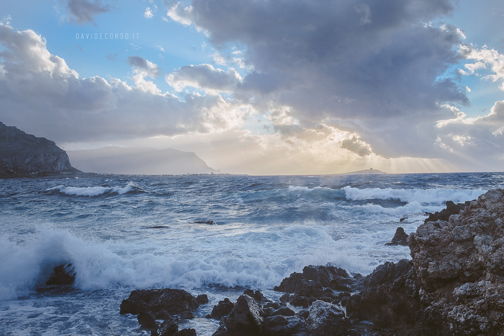 Molto bello il cielo con i raggi uscenti tra le nuvole e dietro il promontorio.
