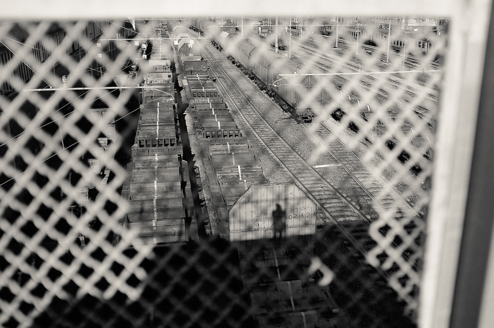 La propria ombra duplicata in soggettiva e sullo sfondo, quasi ad entrare forzatamente nella ripresa, ma con garbo. Attraverso la grata, grazie alla propria ombra, si intravede cio' che si vuole vedere, la propria ombra sul treno verso altre mete.