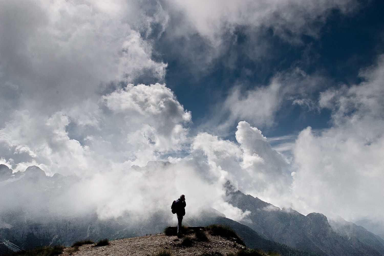 Scura e cupa che penso sia una voluta scelta scenografica a sottolinearne la drammaticità. Una versione montana del "Viandante sul mare di nebbia"