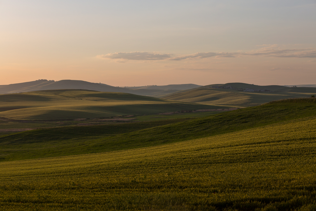 Quel filo di luce in più che ti è stato suggerito visivamente mi trova d'accordo, anche se in ogni caso è buona di suo la tua foto di partenza, con luci discrete e dolcezza di piani collinari successivi.