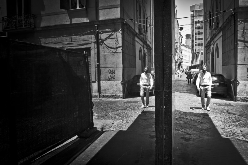 La foto ha un che di surreale che mi piace e la decentratura rispetto al riflesso fa sembrare il soggetto quasi come se fossero due persone diverse.