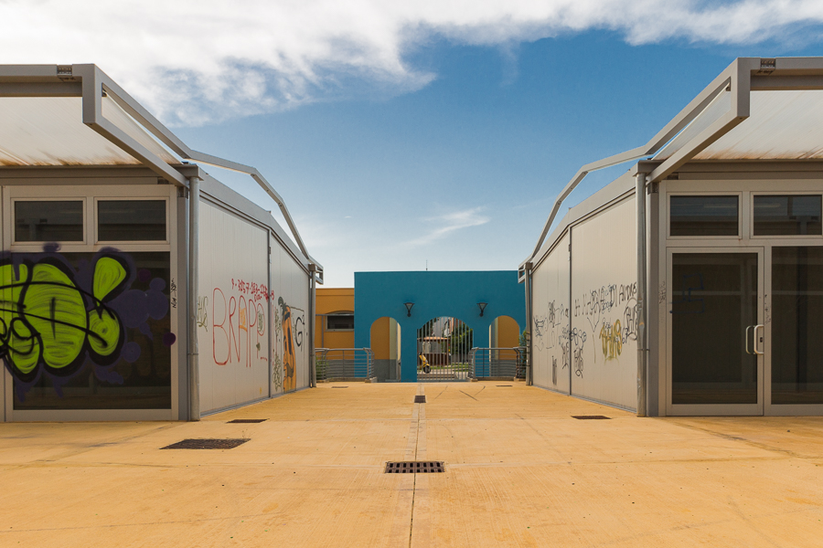Sembra che tutto sia stato abbandonato all'improvviso lasciando solo i graffiti a testimoniare la presenza umana.Ottimi i colori e la composizione.Forse solo un mezzo passo a sinistra per portarti esattamente sulla linea mediana.Complimenti! Ok! Ciao,Sergio. Smile