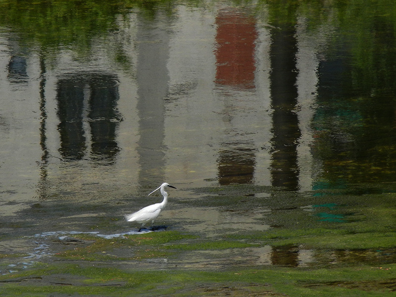 Bellissima fotografia, deliziosa la traccia della garzetta, che sembra quasi passeggiare in una città immaginaria.