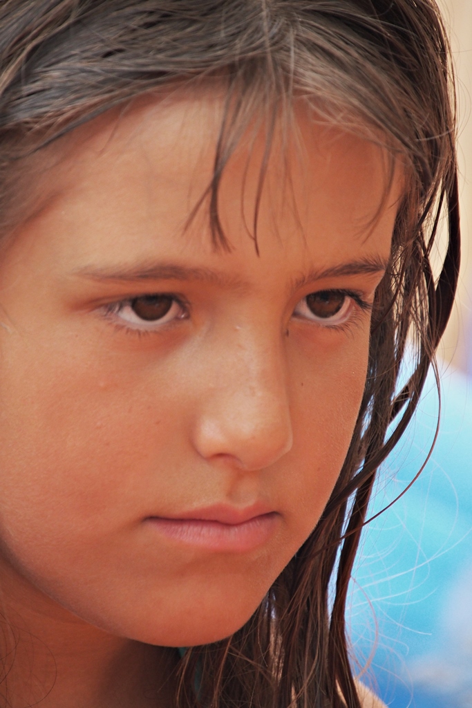 Sguardo intenso, quasi adulto. Bella.