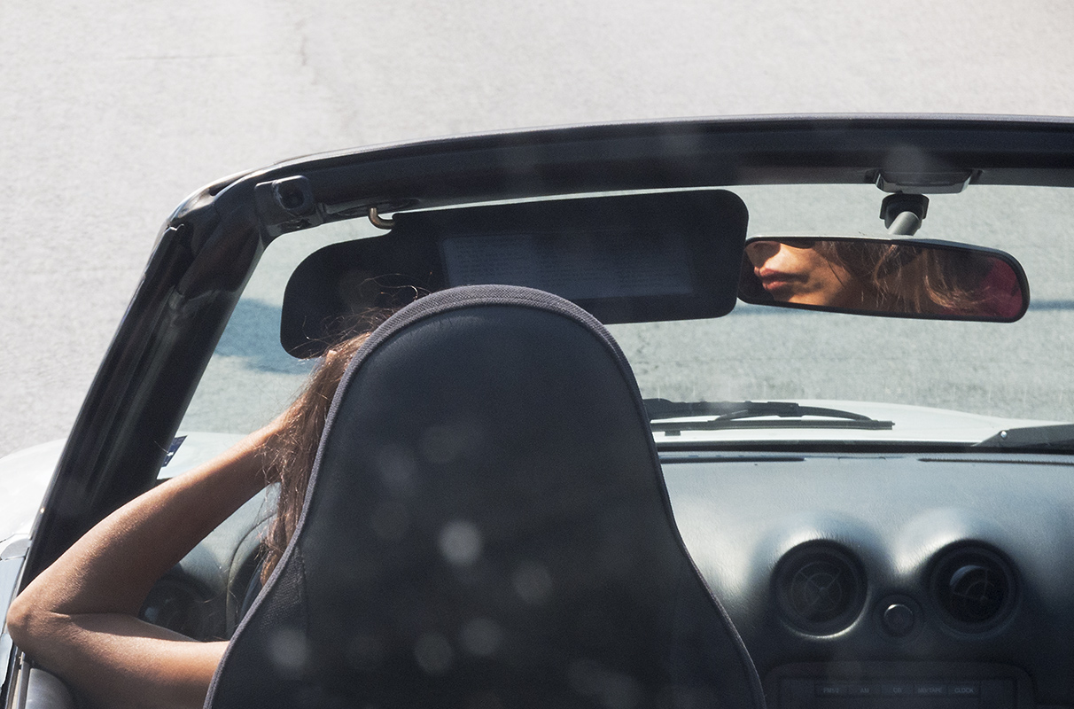 Buona compo, mi piace vedere il soggetto di sfuggita col braccio sporgente dietro il sedile e il suo volto riflesso nello specchietto. Due punti di vista perfettamente ricercati, l'uno celato e immaginifico e l'altro palese e appagante. Bravo