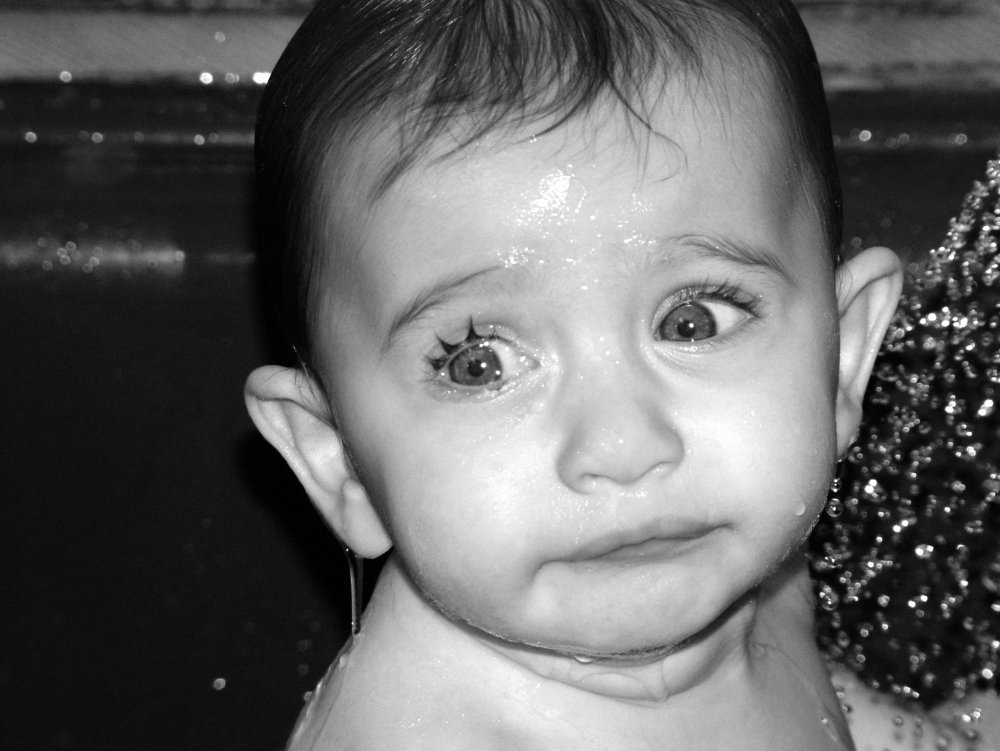 Che bello questo bambino visibilmente in preda alla disperazione, per non voler fare la doccia. Hai colto un'espressione molto eloquente del momento.