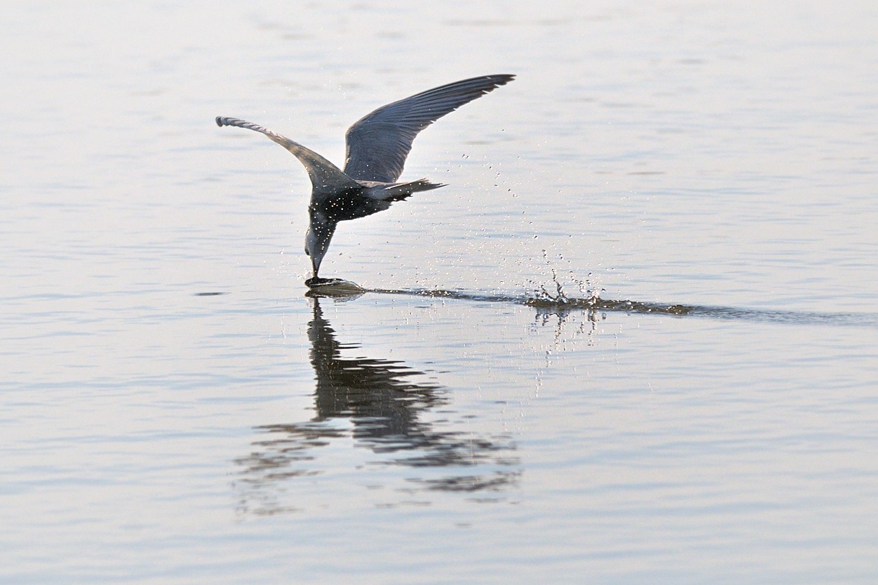 Sterna comune, catturata la rana la passa più volte in acqua prima di mangiarla.