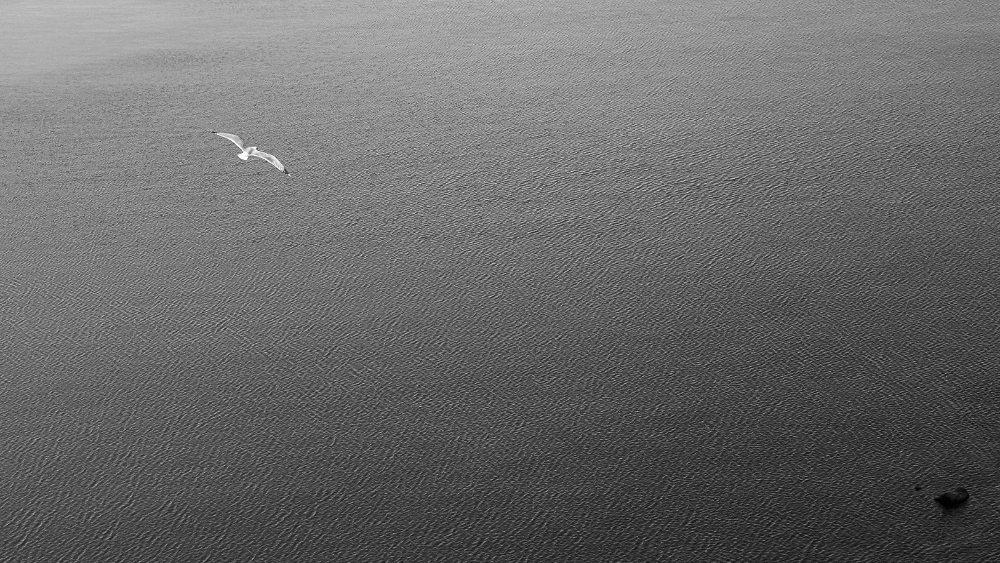 | Bella la resa dell'acqua increspata che da un senso di movimento e poi il gabbiano che sembra librarsi libero e felice; infine la barchetta che però forse sta troppo a ridosso del margine. |