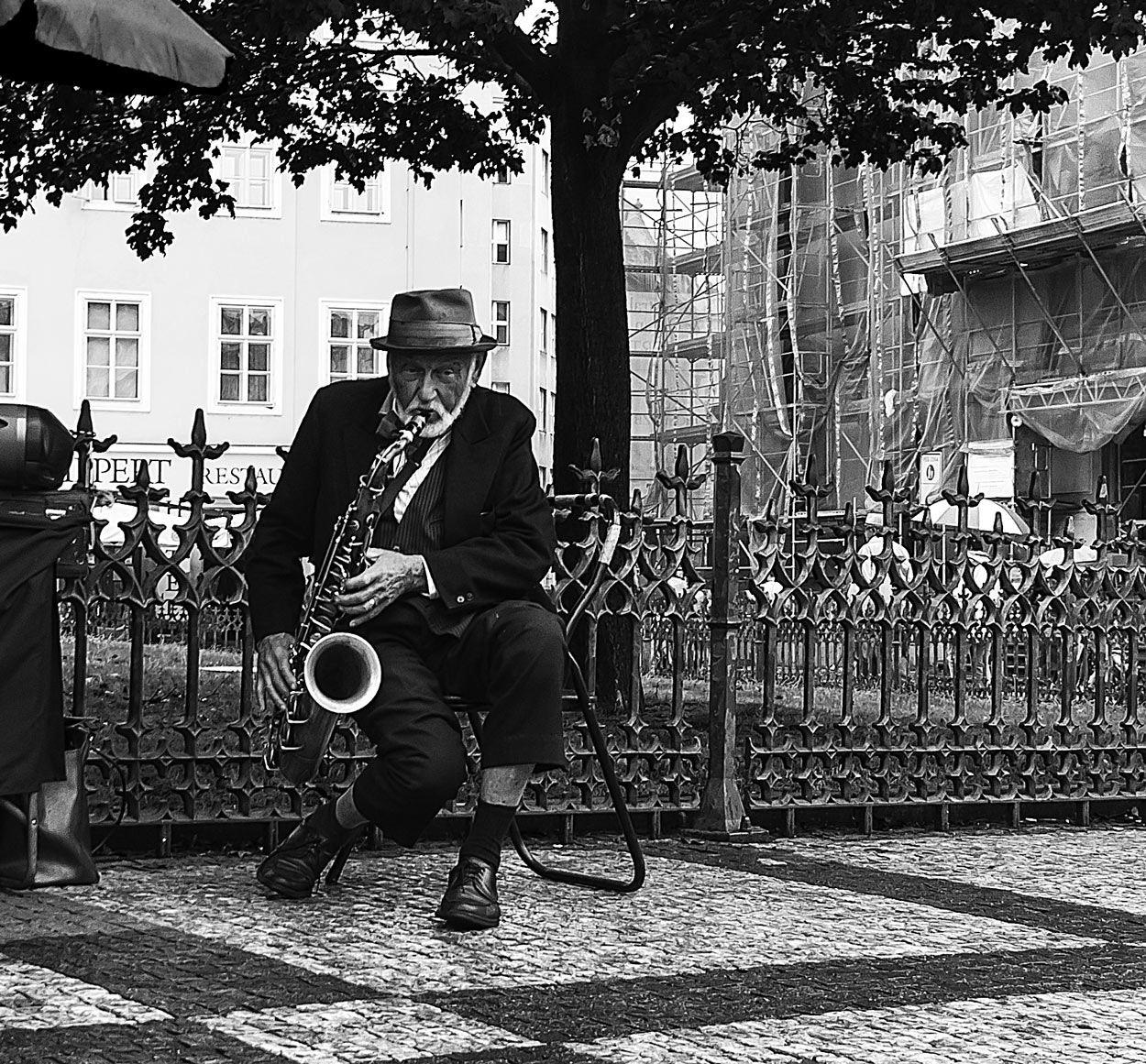 Ciao Dario, gustoso ritatto di un artista di strada che per consuetudine dovrebbe essere postato nella sezione Varie. Buon BN, ma avrei stretto di più sul soggetto.. la contestualizzazione in questo caso distrae e inquina l'immagine