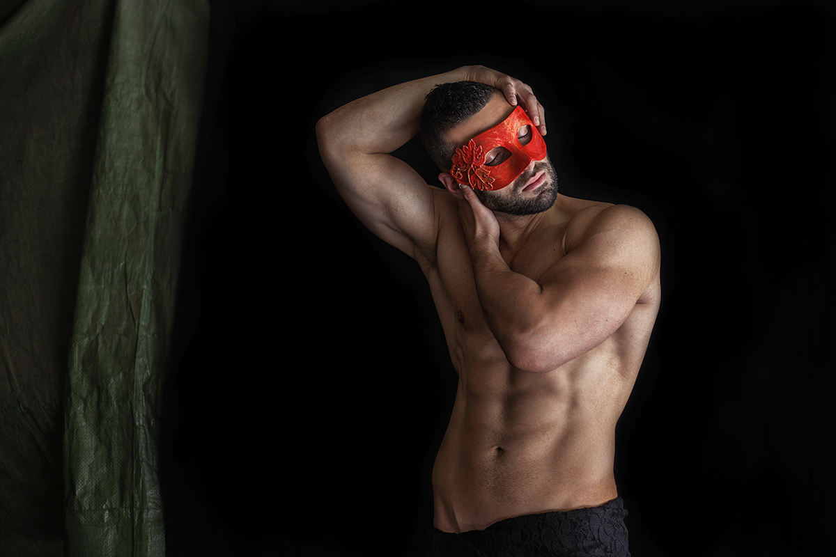 Il tipo di tessuto a lato non è dei più raffinati, ( sembra una trama da giardinaggio) eppure credo che sia una scelta precisa la introduzione di una nota di colore verde non eccessivamente acceso da far dialogare con il rosso della maschera. Il resto è una bella gestualità del protagonista, che ne esalta mettendola in tensione la muscolatura perfetta, mentre il ritmo della visione ha una sua squisita lentezza, come se si percepisse uno svolgimento in ralenty...