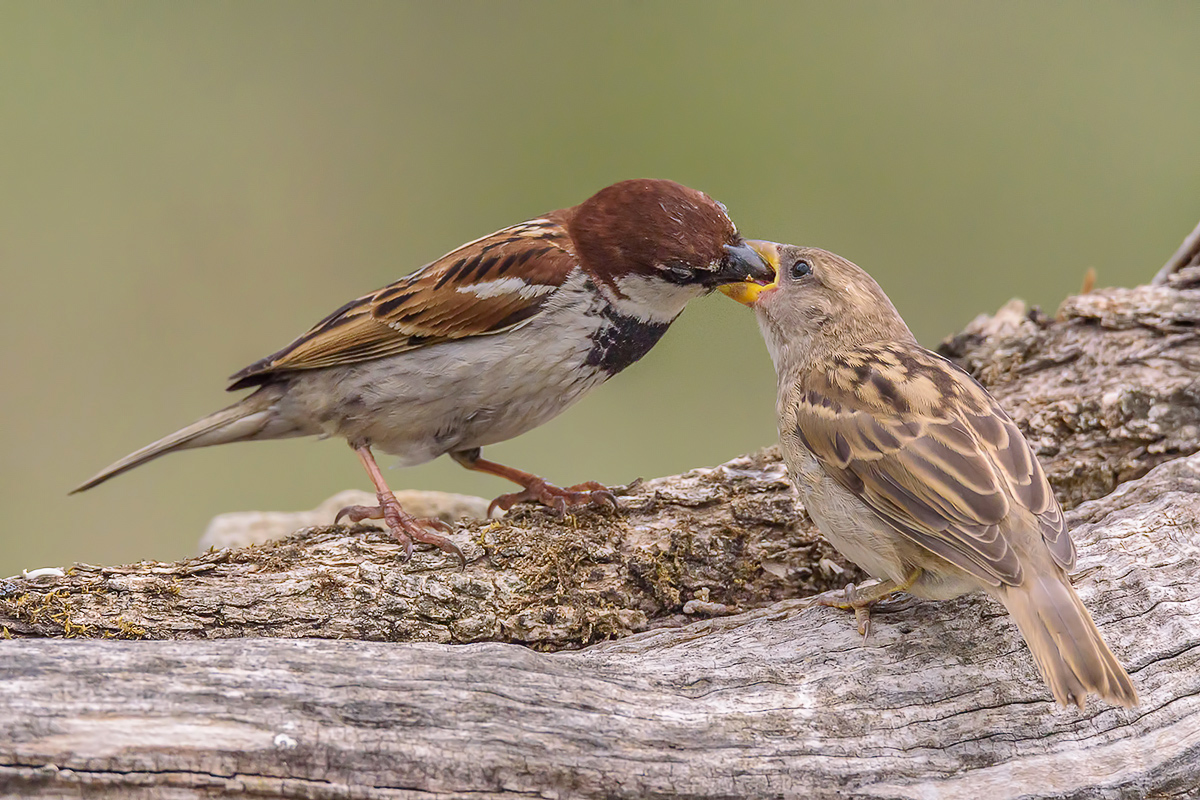Papà passero che imbecca un piccolo. Molto bella Massimo.