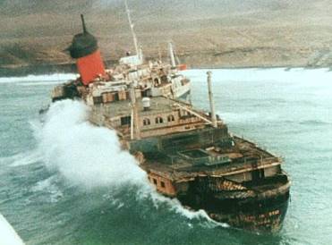 La foto ritrae il relito della nave da crocera American Star (S.S. Australis) varata credo nel 1940 circa.
