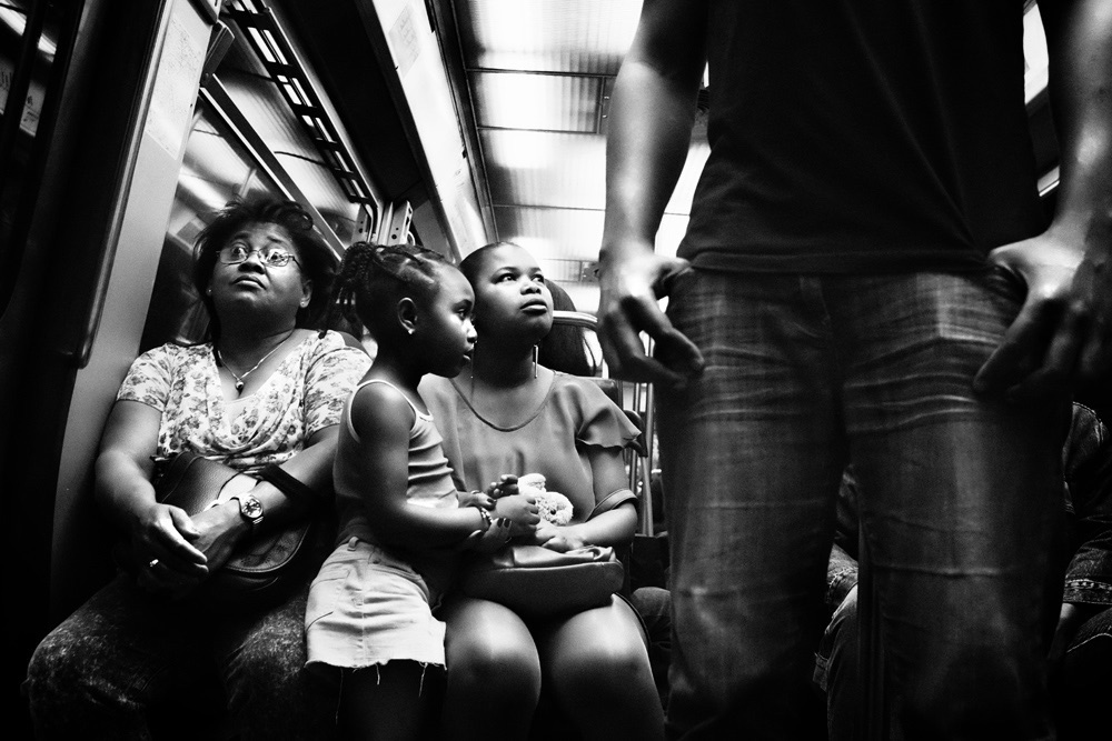 Mi piace. Lo sguardo va con naturalezza alla madre con la figlia, allo sguardo"stralunato" della passeggera. Un b/n "corposo".