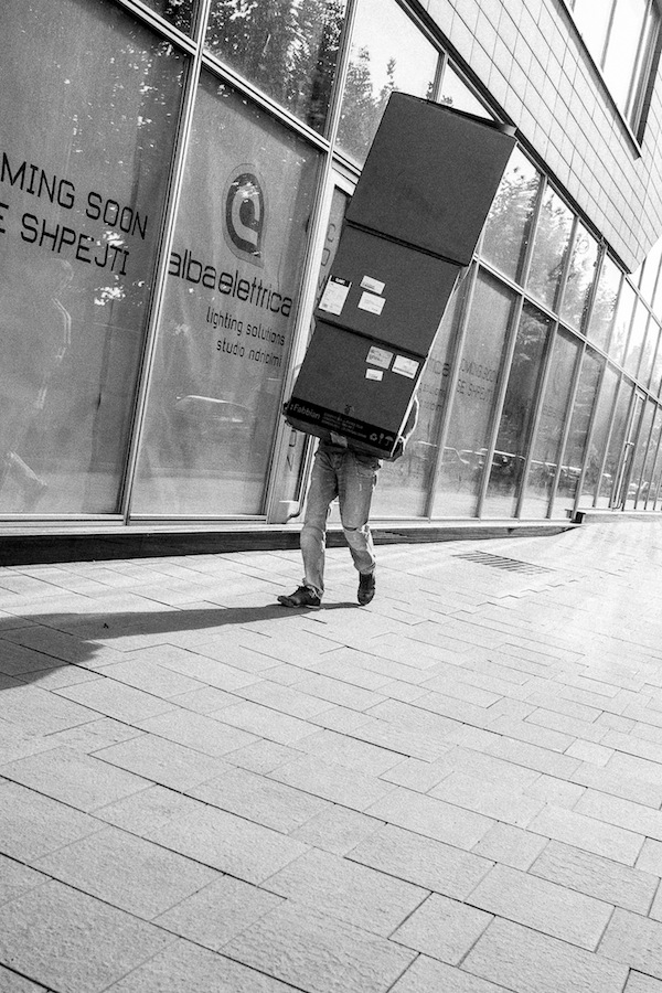 Riguardo alla gestione degli spazi, ho diviso il fotogramma in due parti uguali (circa), in modo che i rettangoli della pavimentazione giocassero con quelli del palazzo.