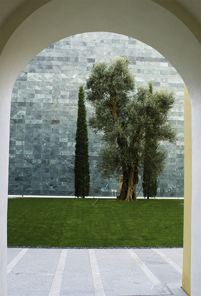 In questa immagine la parete piastrellata in fondo comanda più ancora dell'arco, è quella che da la percezione maggiore.