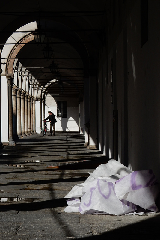 Molto bella, efficace il gioco di ombre e luci che indirizzano lo sguardo verso l'uomo in bici. Ok! Ok! Ciao